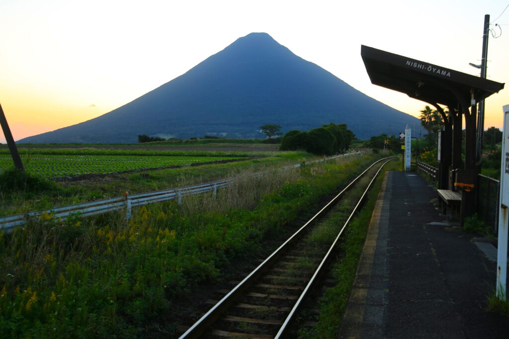 撮影スポットである西大山駅(九州最南端の駅)から。
