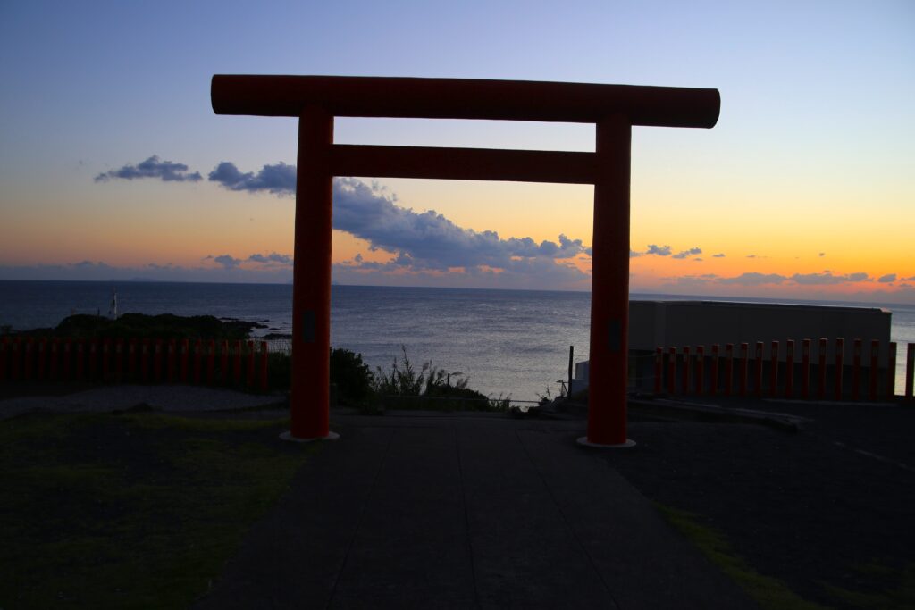 長崎鼻にある竜宮神社から。