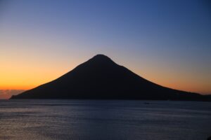 さて今回は、10月の終わりごろに南九州に行った時の写真のご紹介です。この時は何か所かまわることができました。その中で今回は、はじめに訪れた開聞岳(かいもんだけ)のご紹介をさせて頂こうと思います。この開聞岳は鹿児島県指宿(いぶすき)市にあり、九州の南端に位置しております。「薩摩富士」とも呼ばれているとても美しい山です。私もテレビなどで何度か目にする機会があり、いつかは自分の目で見てみたいなと思っておりました。そして今回九州に行くと決めたとき、開聞岳には必ず行こうと考えたのでした。そしてスケジュールなどの関係で、まずはじめに行ってしまおうということになり、鹿児島空港から寄り道をせずにレンタカーで向かい、日の入りしたころに着いたのでした。10月末の南九州は暖かく、冷え込みはじめた関東の気候とは明らかに違いました。長崎鼻ではつくつくぼうしが鳴いていたのも印象に残っております。日中の開聞岳は残念ながら撮れませんでしたが、夕暮れ時のシルエットになった開聞岳を見れたので良かったです。シルエットになったことでその稜線がよりはっきりし、とても美しかったです。そして、ほかの円すい形の山と違うところは、陸地の端っこにあり、海側に飛び出ているようにしてそびえているところです。長崎鼻から見た開聞岳は、海の上に浮いているように立っていて、この光景はここでしか見れないものだと思います。指宿には指宿温泉もあり観光にもおすすめです。ぜひみなさまも、波の音を聞きながら、海に浮かぶ美しい薩摩富士を味わってみてください。