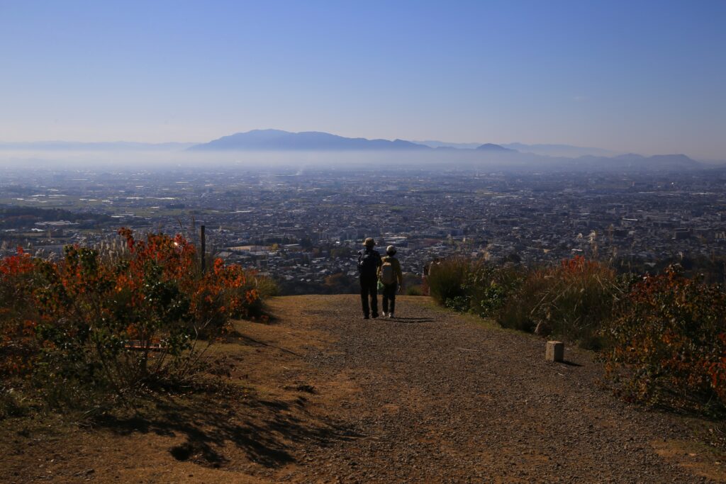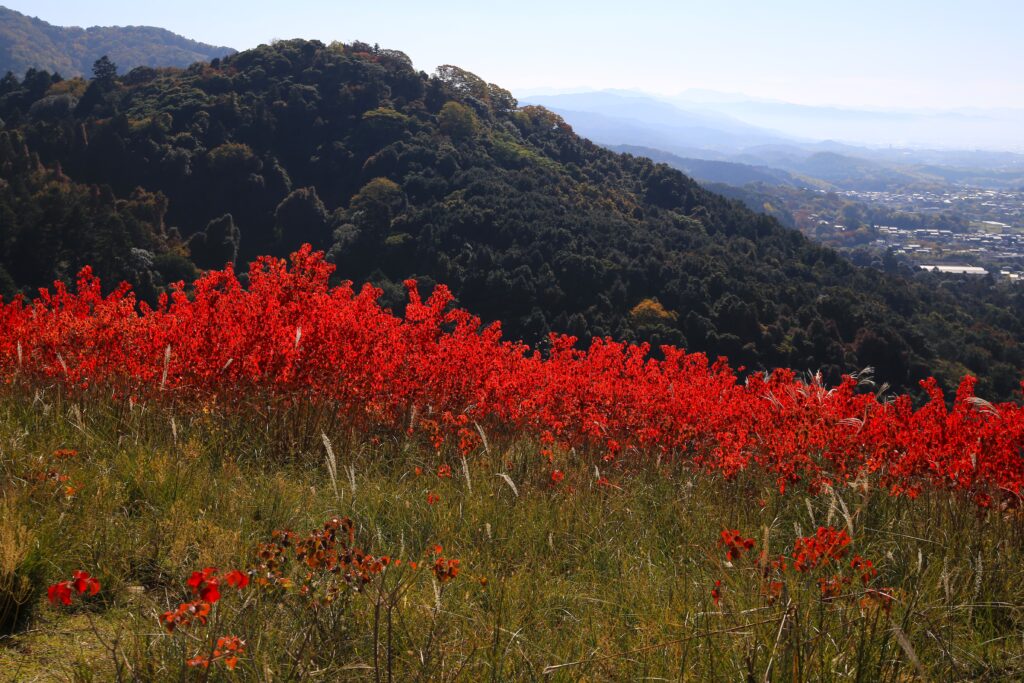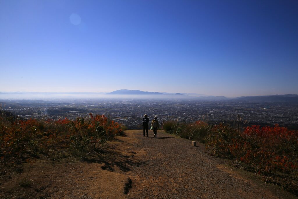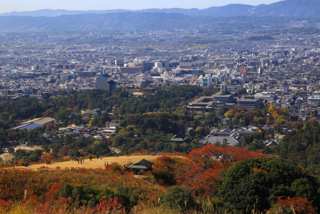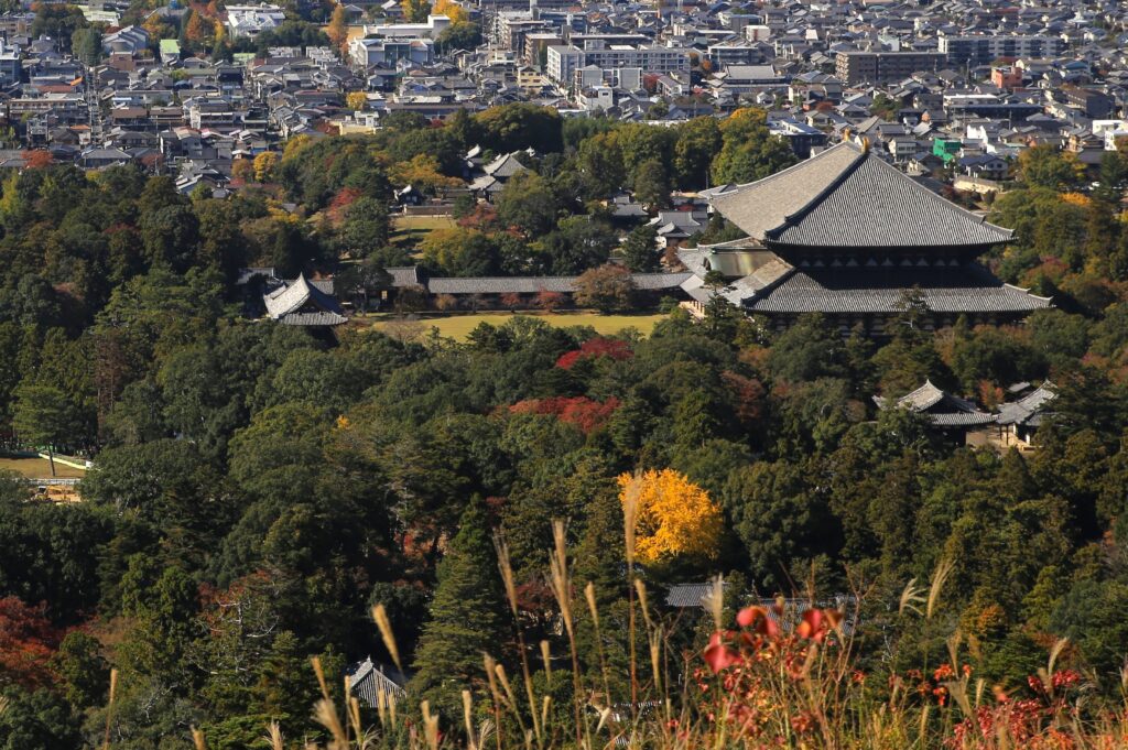 今回は前回の続きとなりまして、秋の若草山(奈良市)とそこからの眺めのご紹介です。この若草山は3段に分かれているところから「三笠山(みかさやま)」とも呼ばれております。各段それぞれ奈良市の街並みを違った角度と距離感で見て味わうことができます。1段目(最下段)と2段目(中段)では大仏殿と、あと正倉院が見えたかと思います。また、ご紹介している写真を見て頂くとわかるかと思いますが、3段目(最上段)からは2段目を前景とした街の景色(前週に掲載)が、2段目からは1段目を前景とした街の景色が楽しめます。そしてこの若草山からの眺めは、「新日本三大夜景」にも選ばれているようです。夜景もすごく美しいのは容易にイメージできます。とにもかくにも、ここからの眺めはとても気持ちがよく素晴らしいものです。自分の目で実際に見て、体感していただくことをおすすめいたします。「来てよかった。」「来てなかったら後悔したな。」と思える場所です。古都奈良の若草山、ぜひお越しください。