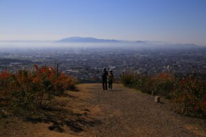 山の麓から頂上まで、往復する場合は1時間は見ておいたほうがよいと思います。
